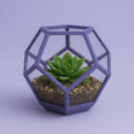 Estructura rígida impresa en 3D con paneles acrílicos transparentes. Base con lecho de piedras y ventilación superior. Incluye guía de armado.