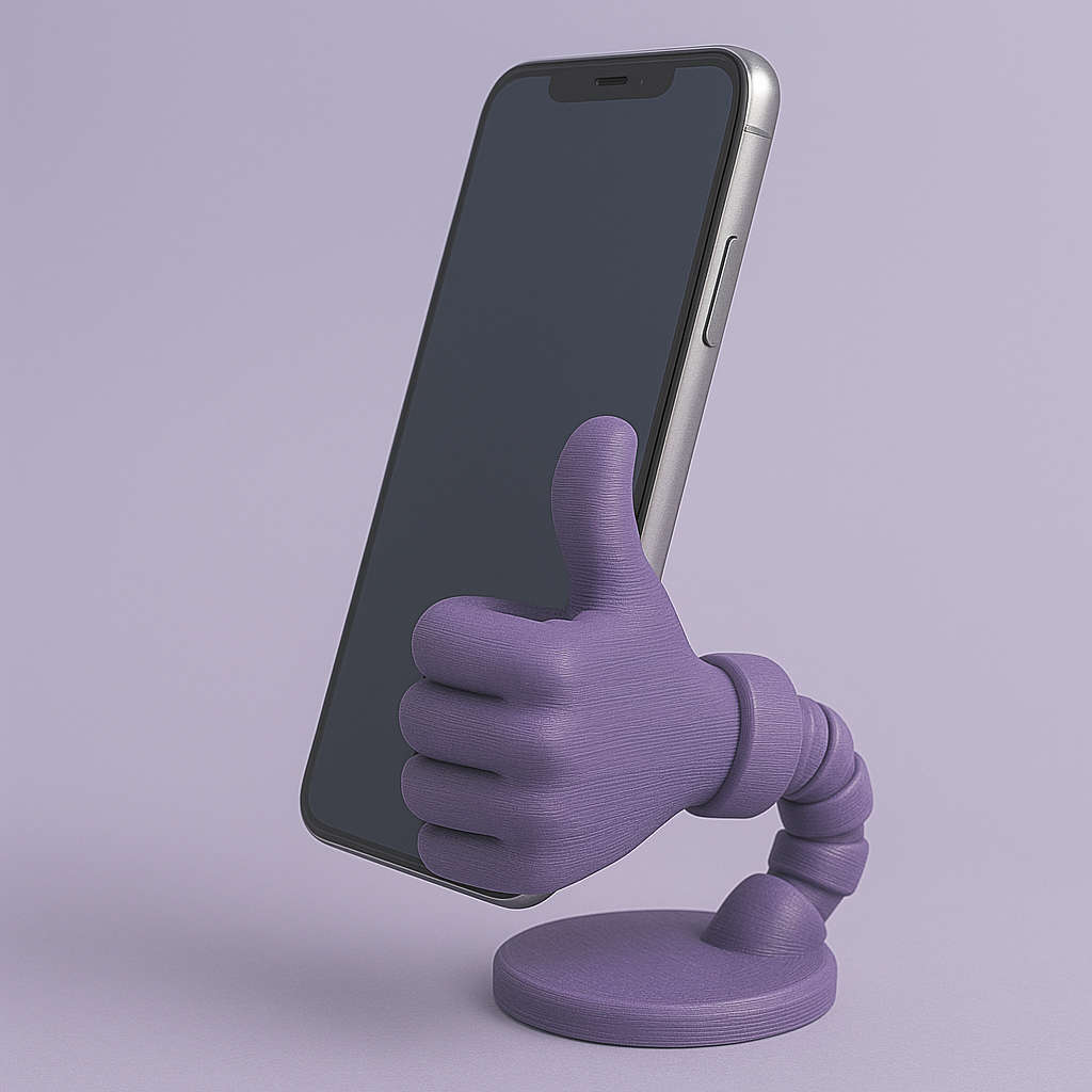 Soporte de mesa con pinza en forma de mano y muñeca articulada.